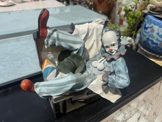 ピエロ置物 カテゴリー:オブジェ | フィギア タグ:ピエロ | 置物 | 道化師 投稿日:2026年4月7日 幅約30cm位の硬質ポリレジンで作成された趣あるピエロです。お好きな方のご来店お待ちしております。