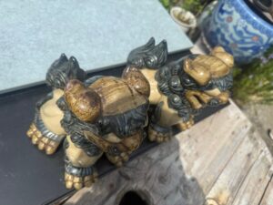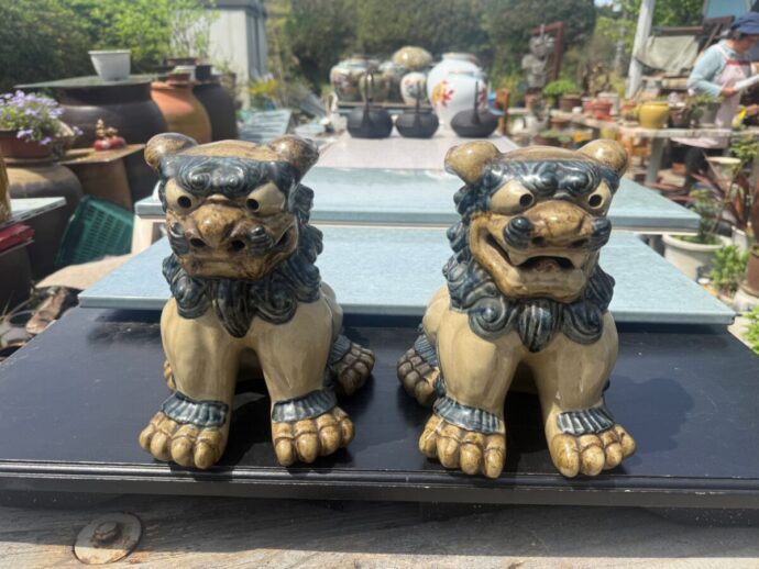 沖縄シーサーです。あうんの呼吸で年代を経た対です。高さ約20cm位です。傷みはございません。