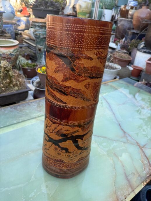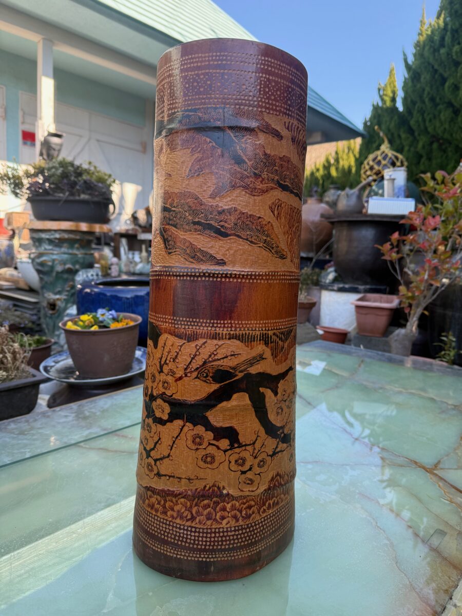 竹彫りの大変綺麗な飾り寸渡です。高さ約80cm位です。絵柄も上品な素晴らしい竹彫りです。